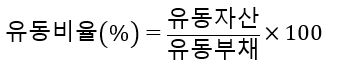 기업의 단기부채상환능력을 측정하는 지표이다. 회사의 지불능력을 판단하기 위해서 사용하는 분석지표로 유동부채의 몇 배의 유동자산을 가지고 있는가를 나타내며 이 비율이 높을수록 지불능력이 커진다. 유동비율은 대체로 높을수록 좋다고 할 수 있으며 최소한 100% 이상을 유지하여야 하며 일반적으로 200% 이상이면 안정적이라고 판단할 수 있다. 200%가 이상적이며, 2대 1의 원칙이라고도 한다.
