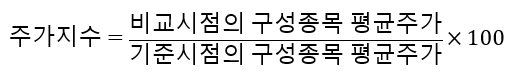 어떤 시점을 기준시점으로 하여 그 기준시점의 주식시장 전체의 가격 수준을 100으로 한 후, 비교시점의 가격 수준은 이에 비해 얼마나 되는지를 측정한 값이다.