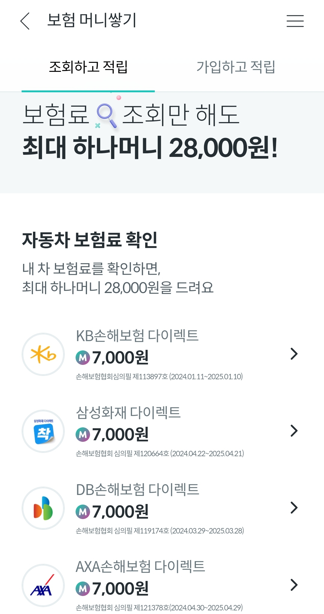 핀크앱: 홈탭  보험 ▶자동차보험 찾기 ▶보험료 확인