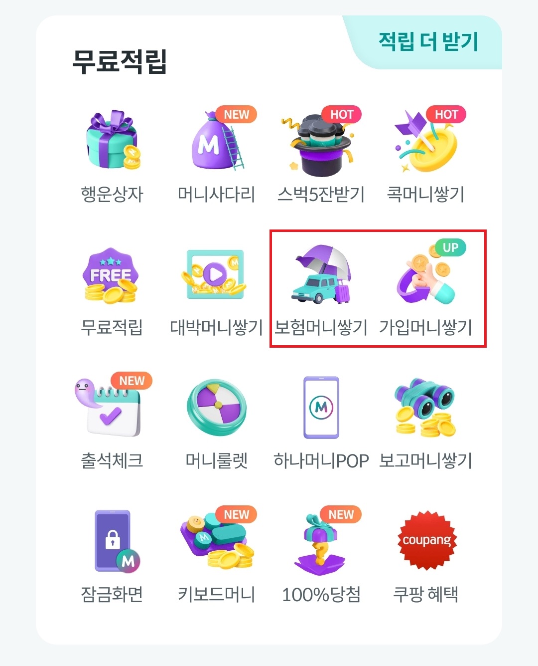 하나머니앱: 하나머니앱 홈 ▶무료적립 ▶보험머니쌓기